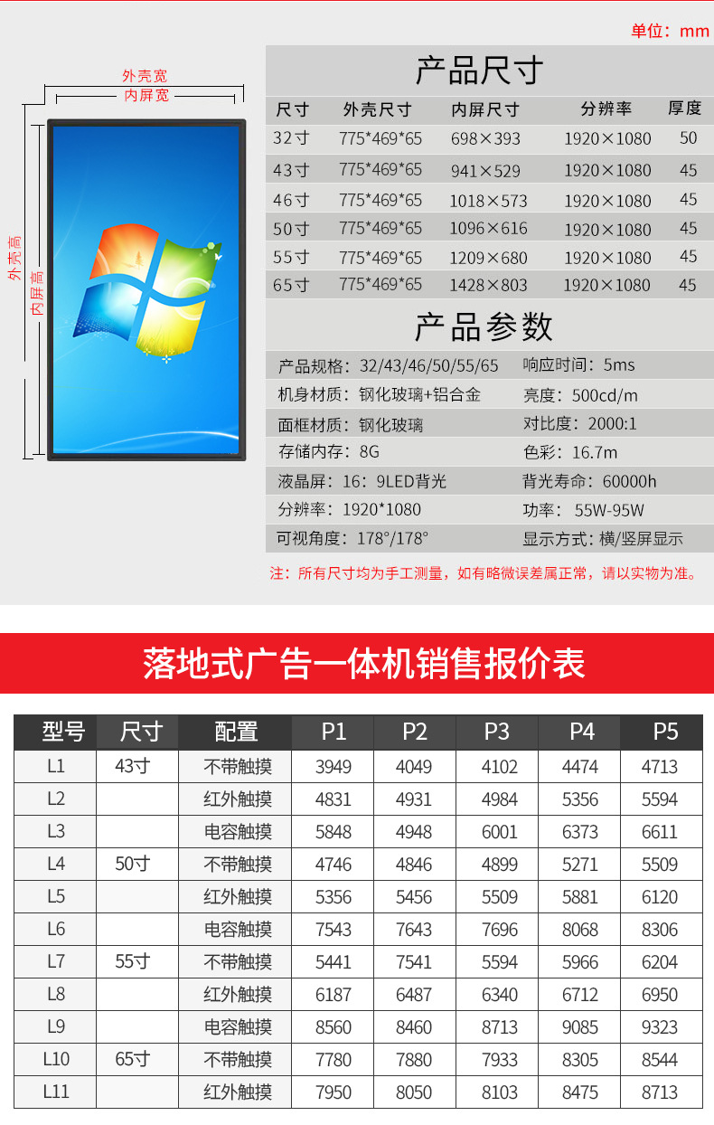 windows系統(tǒng) 可更換安卓系統(tǒng) 高清顯示 用于會議室 商場等地