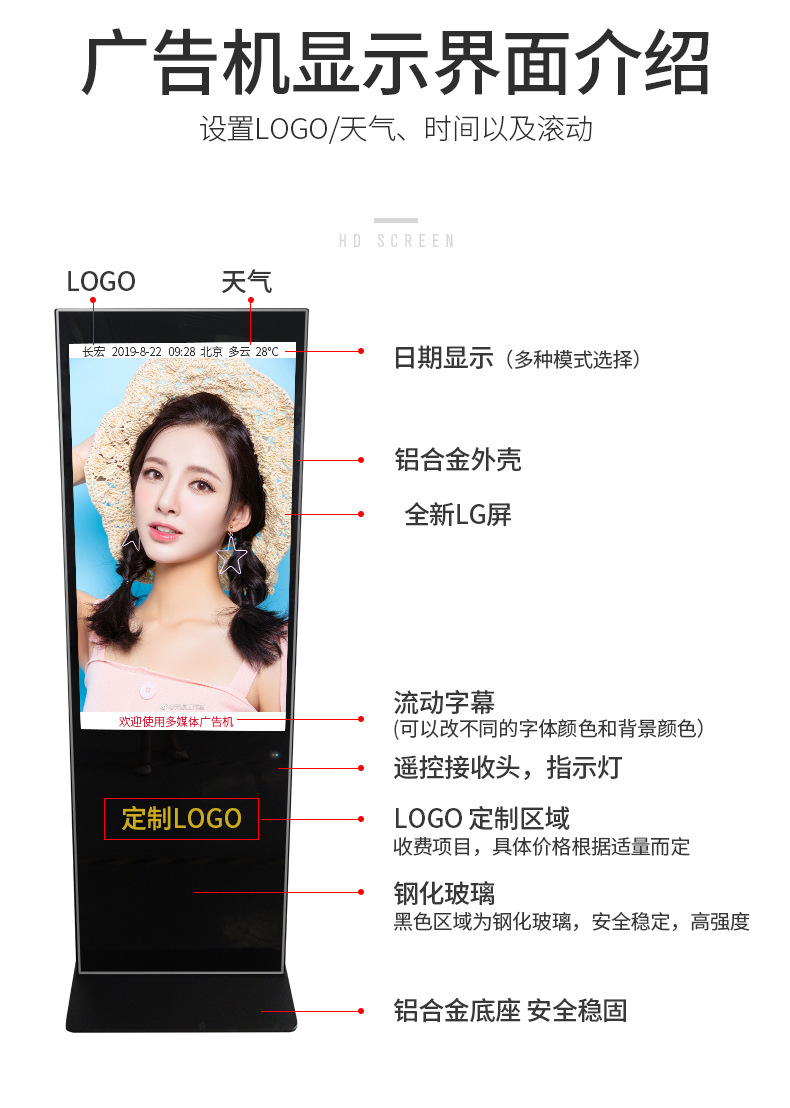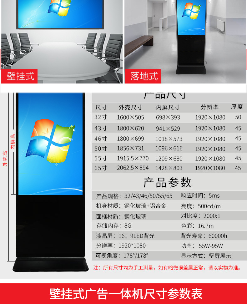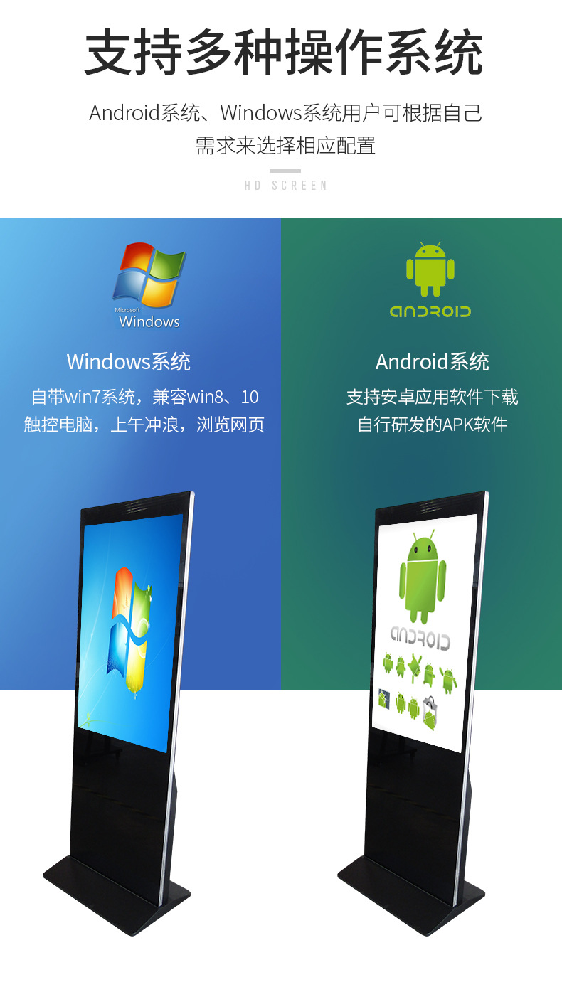 落地式智能廣告一體機 win7/安卓系統 高清顯示 主要用商場 門店 政務中心等